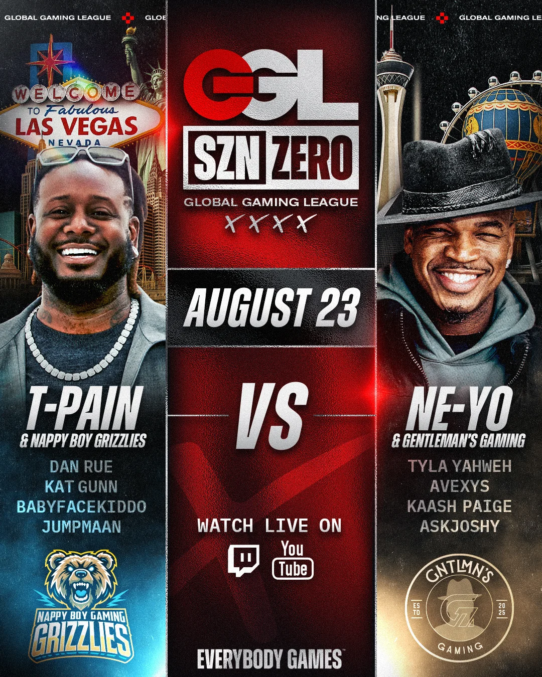 In the heart of Las Vegas, the bright lights are about to shine on a groundbreaking collision of music, gaming, and celebrity culture. On August 23, the Global Gaming League (GGL) is set to launch SZN Zero, its inaugural season, with a much-anticipated face-off between two R&B heavyweights: T-Pain and Ne-Yo. And this showdown is far from ordinary.